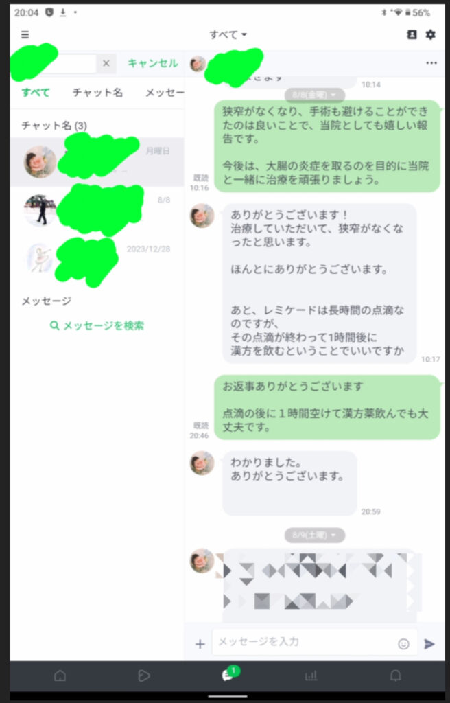 現在は内視鏡・血液検査などで経過を観察しつつ、漢方・鍼療法を含めた治療で完治や症状の再発予防と生活の質の維持を目的として通院されております。
