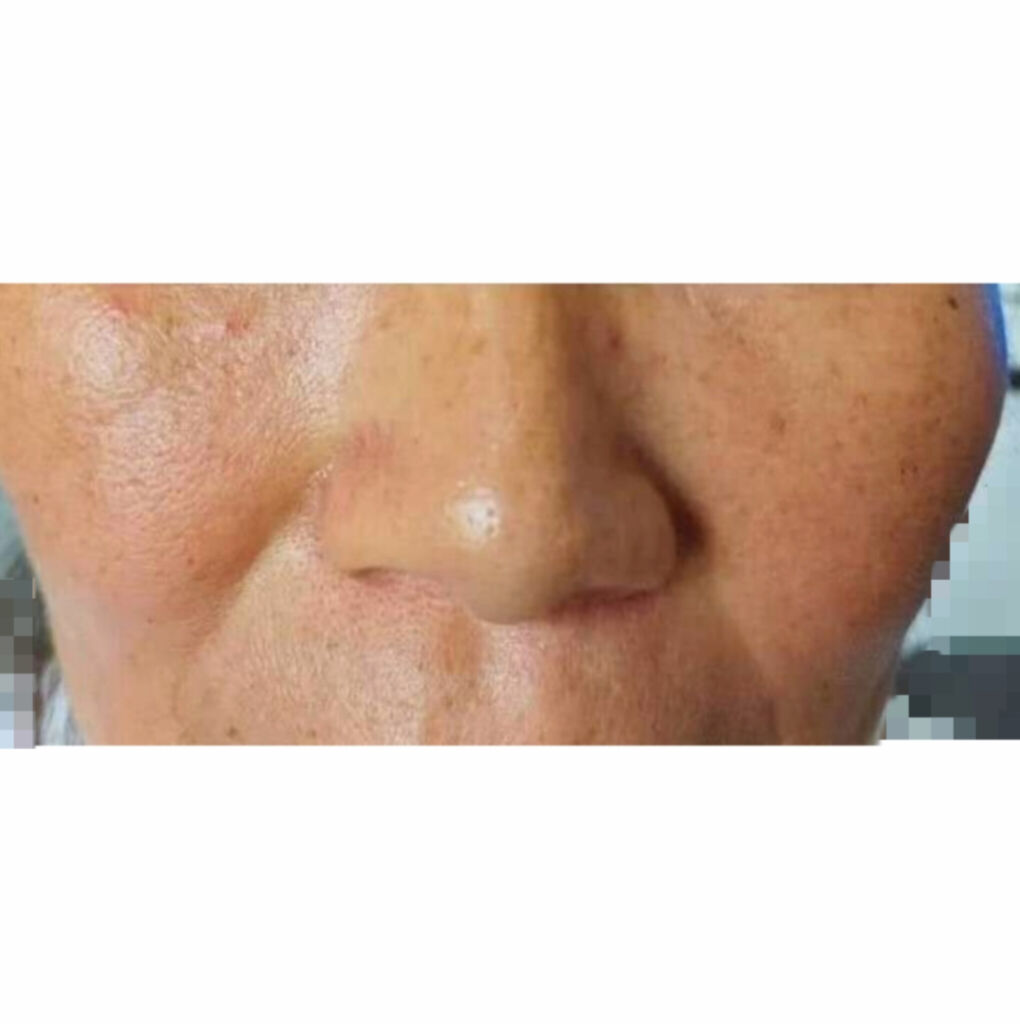酒さは治らないと赤みだけでなく、進行すればニキビのような丘疹や膿疱も混じってできることもあります。丘疹が増えると腫瘤状(できもの様)になり、特に鼻は凸凹に盛り上がります。