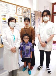 付き添いで来ていたご主人も病気がありましたので同時に鍼治療を受けられ、撮影時に一緒に入っていただきスタッフとともに記念撮影をしました。旅行が趣味とのことでいろんなところへ行けるようになり大変喜ばれていました。