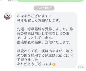 永口様はまだ治療を受けられて時間が経っていませんが、効果を感じられて息苦しさがましになったとご連絡を頂きました。