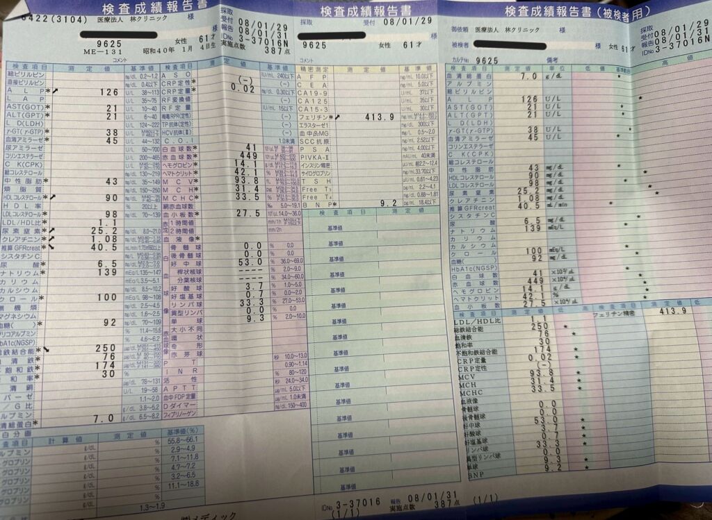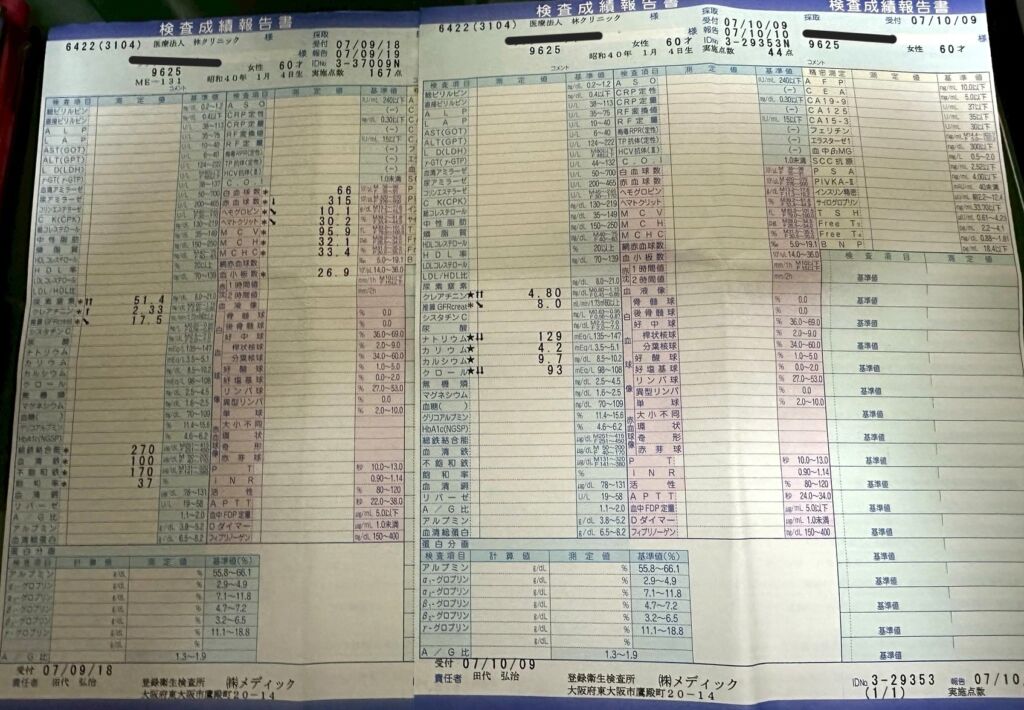 上の写真は内山様より頂いた医療法人 林クリニックでの検査データです