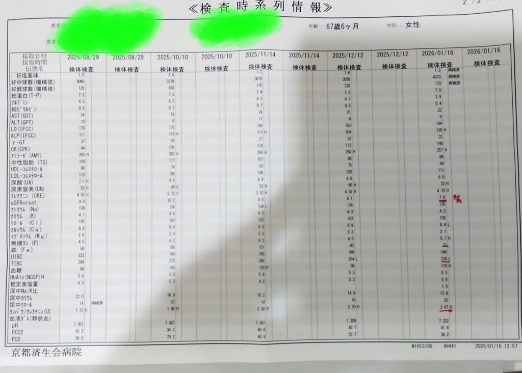 狩川様の御都合により決まった曜日に当院に通院され、2026年1月30日の病院の検査では
