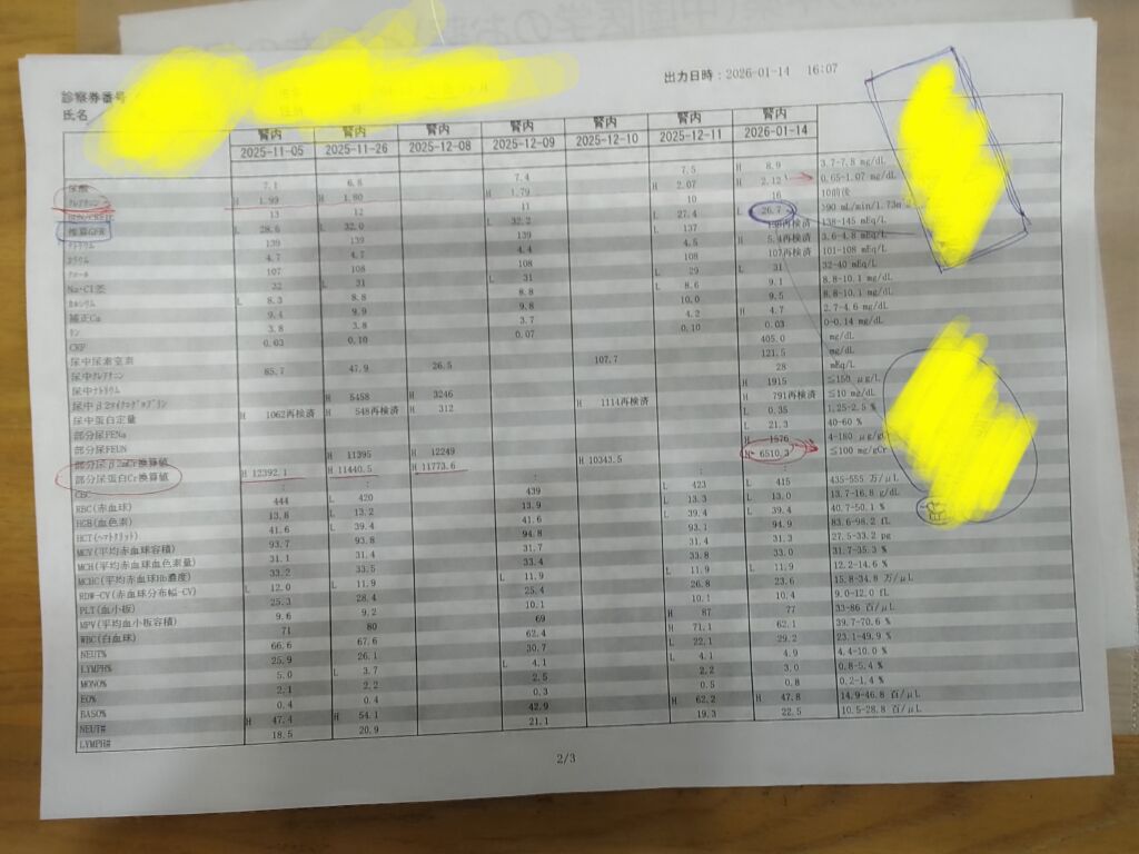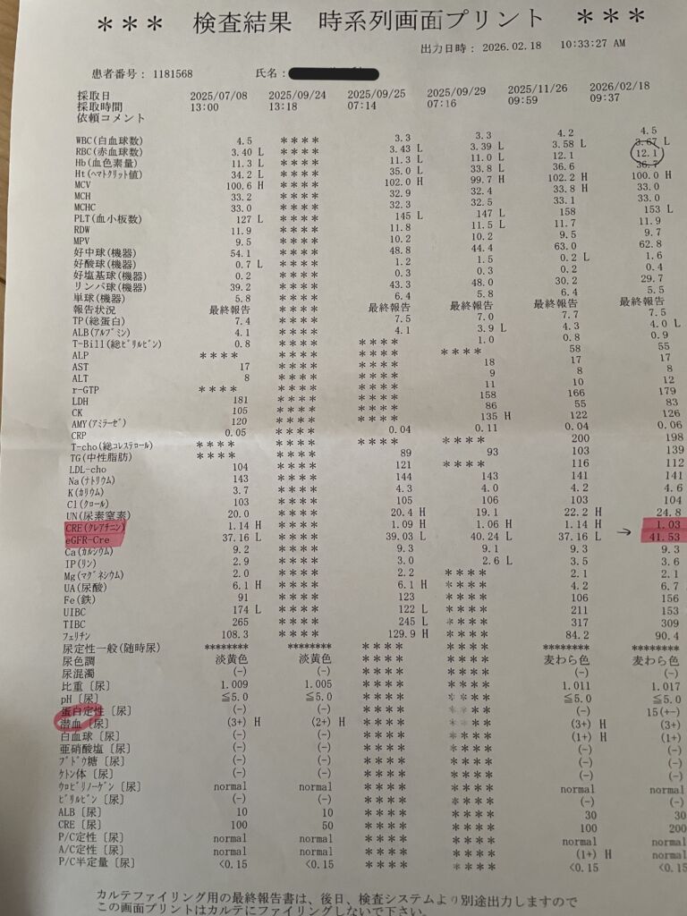 また、eGFRや尿素窒素などの数値にも良い変化が見られ、全体的に腎機能の改善傾向が確認されています。