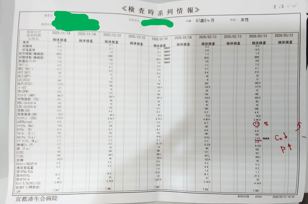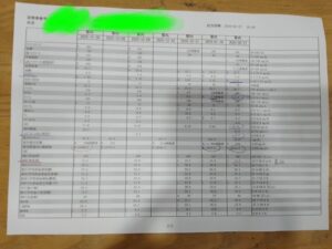 写真は川田様よりご持参いただいた大山記念病院での血液検査のデータです