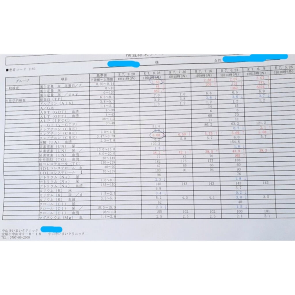 治療の効果が出て、腎臓の数値は正常になりました。