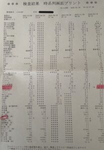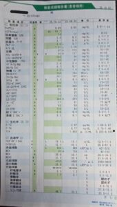 写真は寺谷様より提供いただきました西洋医学の病院での検査データです