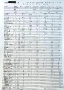 写真は恵木様より提供して頂いた西洋医学の病院での血液検査のデータです。