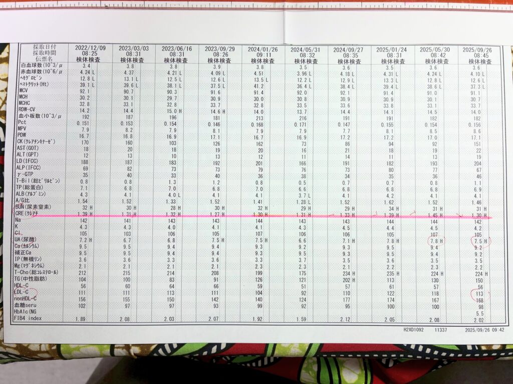治療の結果腎臓の数値はすべて正常値となり、慢性腎不全となっている原因を調べるための腎精検も必要ないとのことで見送ることになりました。