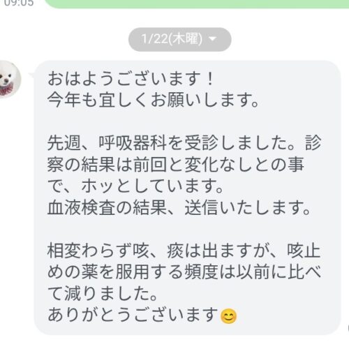 永口様は間質性肺炎のため治療を受けられていましたが改善されました。ホームページの症例紹介はこちらをクリックhttps://dairyuukou.com/disease/haien/